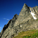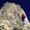 Mid Sept might not be the smartest time to spend two weeks in Titcomb Basin, but what did we know. This was our first trip to the Northern Winds. More or less had the place to ourselves. In between the storms we got to climb on three days, the last of which was a full on epic ascent of Tower 1 Gully and Tower Ridge to Mt Helen. Descended in the dark w/o headlamps using the moon when possible. Arrived back at camp at 1am to find the dogs freaked out and our tent flat and broken from the strong winds that had blown all day long. Next night a big thunderstorm roared down the valley. Pretty intimidating as the thunder roared and the winds battered our patched up tent poles. The next morning was clear and calm as we started the two day walk out.