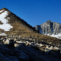 The last big effort of the 2021 season. Seems like May is already a distant memory now that the crowds, heat and bugs have arrived in the high country. On my long but scenic approach via Rush Creek / Spookey Canyon I lost count of the huge numbers of PCT thru hikers - some doing sections, others going for the full enchilada. One thing I did not see this entire season is another climber. Kind of odd. Anyway, the std route on Lyell is a real classic. As usual it seems at odds with the Secor description of the route rated at class 2-3. While the summit ridge is indeed class two, the fine solid rock found on the face just left of the upper col is not class 3. If it is, it's 3+ no fall climbing. Steep, solid and gifted with holds in all the right places. Most likely there are other ways to go, but the intuitive way was even marked by several small cairns. Down-climbing the route is definitely the crux. The view from the top is not to be missed.